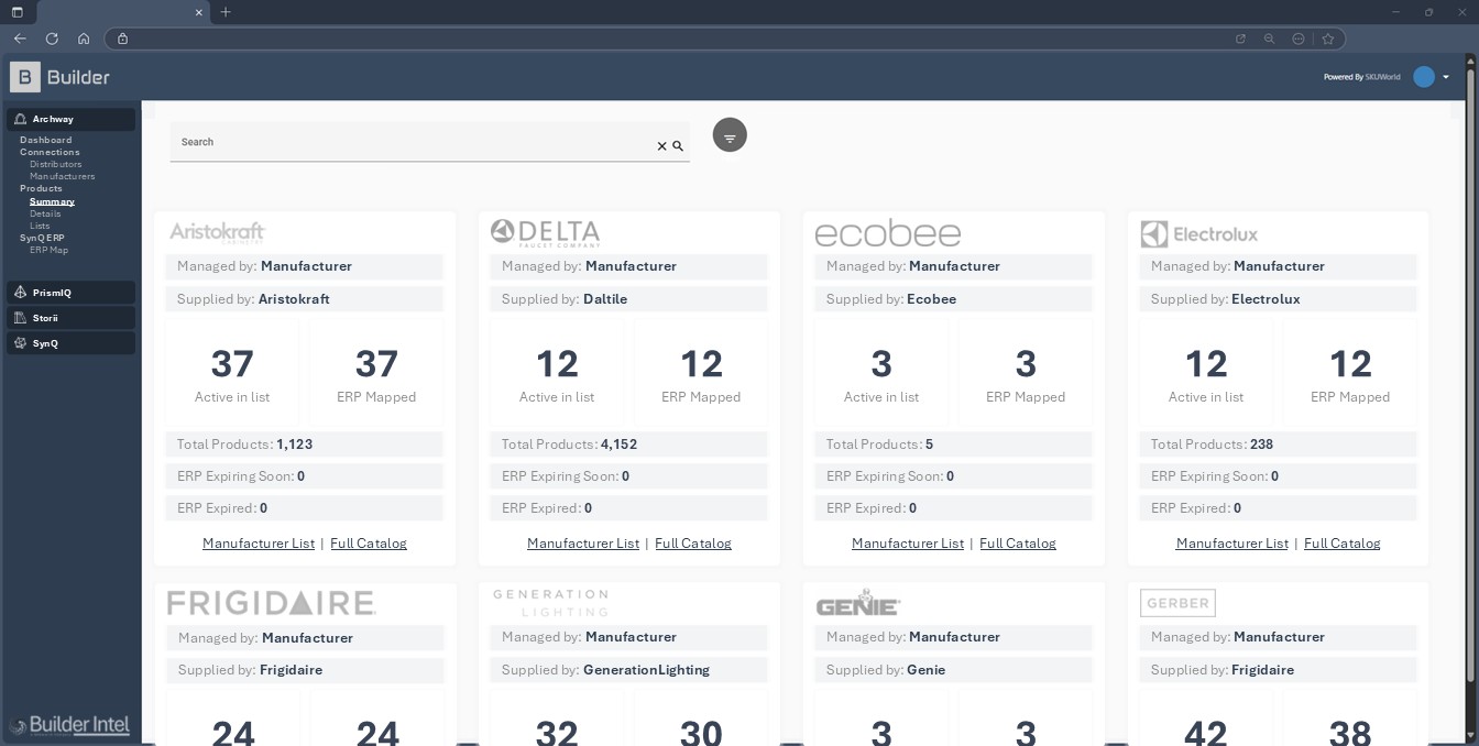 Centralizes product SKUs and connects manufacturers, distributors, and builders, ensuring clean data and faster decisions across all product categories.