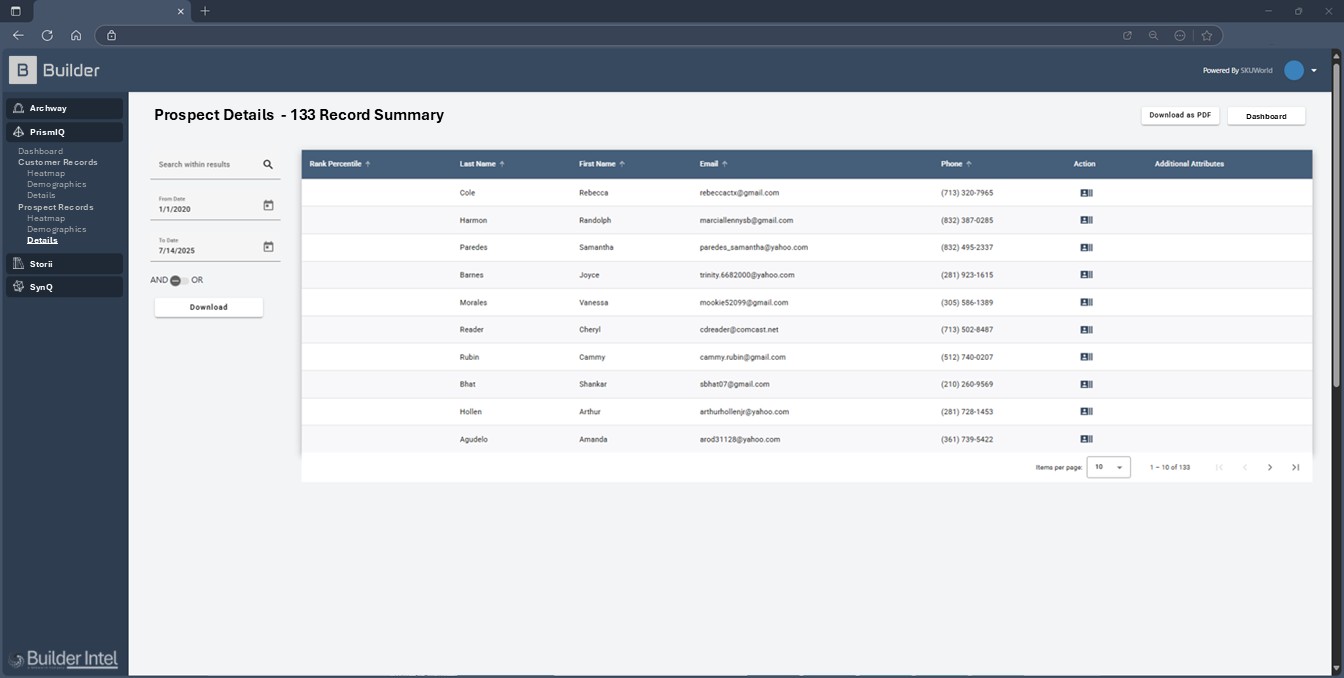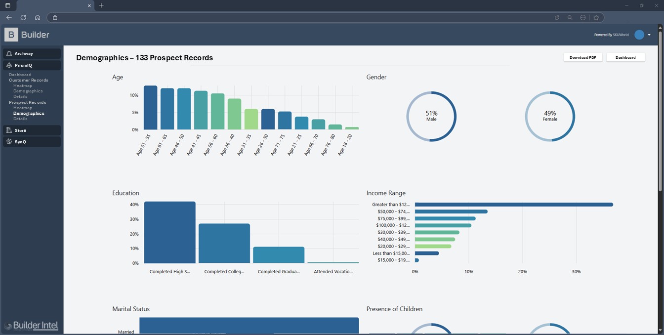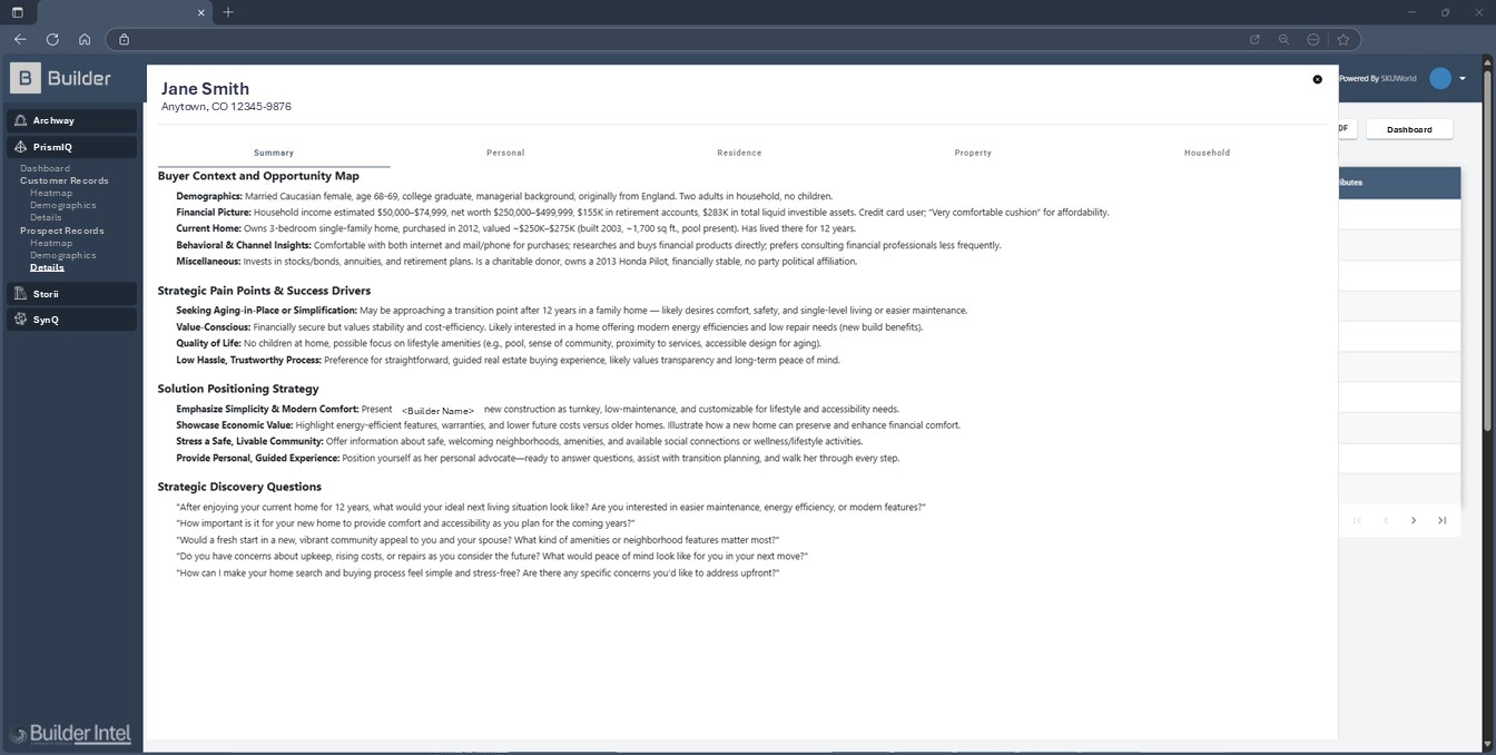 Our platform unites four powerful solutions—SynQ, Archway, PrismIQ, and Storii—to connect your entire business and unlock smarter, faster, more profitable operations. From ERP integration and SKU management to customer intelligence and digital buyer experiences, Builder Intel helps residential homebuilders transform complexity into clarity.