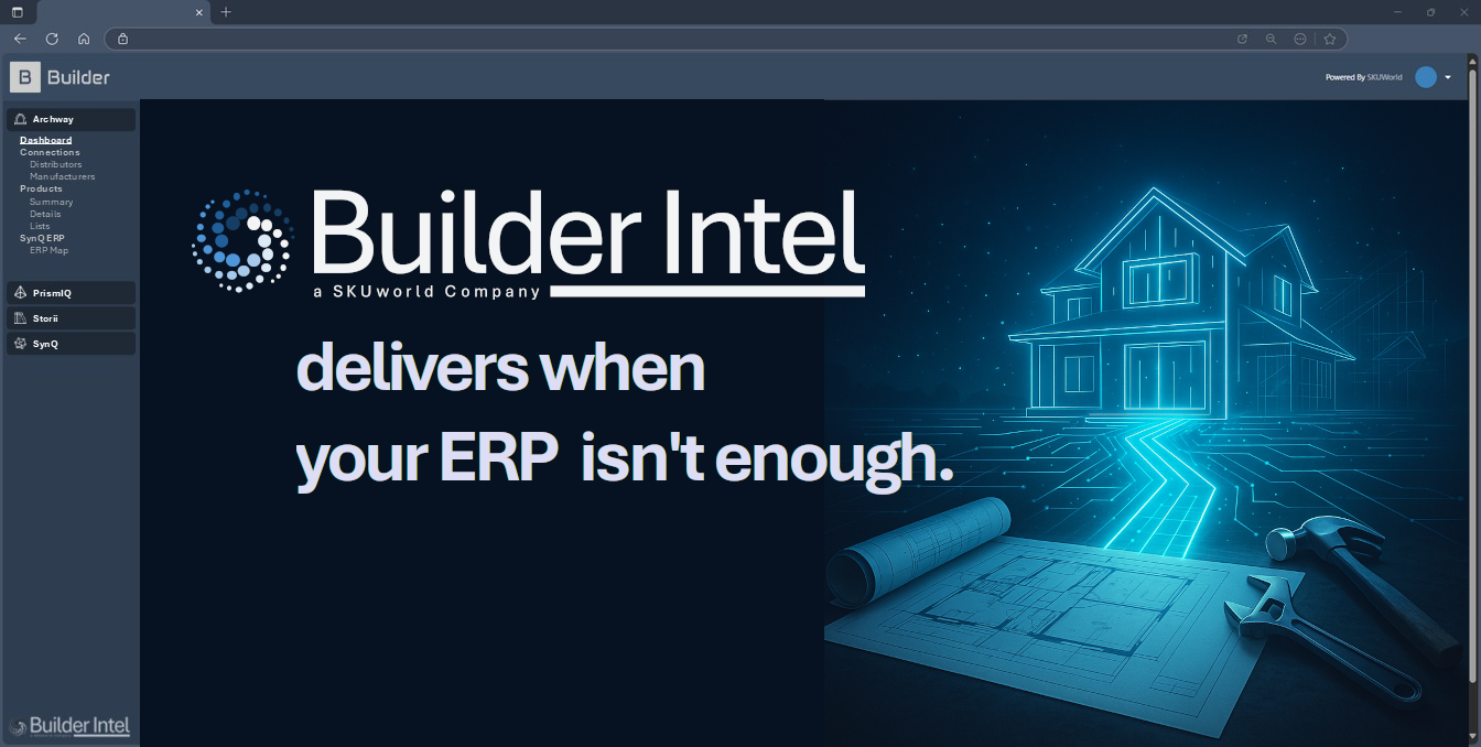 Builder Intel is revolutionizing the homebuilding industry with AI and data-driven technology to improve how homebuilders operate and streamlining the entire supply chain. Our connected platform is purpose-built specifically for today’s homebuilding industry- uniting data, products, suppliers, buyers, and cross-functional teams in one intelligent system. With four solutions- SynQ, Archway, PrismIQ, and Storii, we turn scattered systems and disconnected suppliers into a strategic advantage.